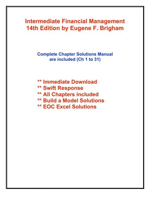 Download Intermediate Financial Management Solutions PDF online is a convenient and frugal way to read Intermediate Financial Management Solutions you love right from the comfort of your own home. Yes, there sites where you can get PDF "for free" but the ones listed below are clean from viruses and completely legal to use.