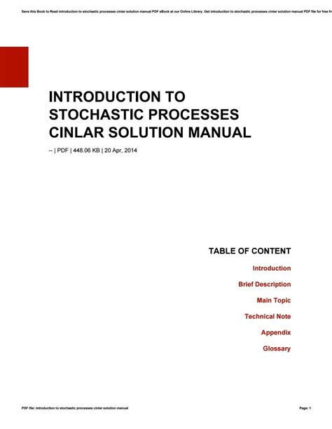 Read Introduction To Stochastic Processes Cinlar Solution Manual Reader By Click Button. Introduction To Stochastic Processes Cinlar Solution Manual it’s easy to recommend a new book category such as Novel, journal, comic, magazin, ect. You see it and you just know that the designer is also an author and understands the challenges involved with having a good book. You can easy klick for detailing book and you can read it online, even you can download it